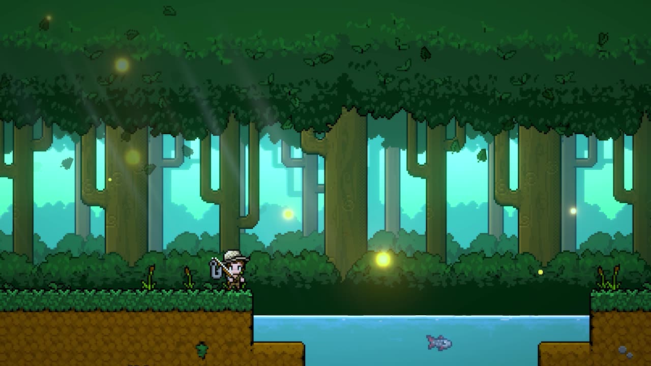 Геймплей строится на точном тайминге и магии: вы выбираете правильную наживку, атакуете рыбу в нужный момент и используете заклинания для победы, параллельно выполняя квесты и отправляясь на исследование земель Азерима — как наземных лесов Медвудэ, так и подводных пещер. Удочка, лодка и шляпа служат вашей экипировкой, каждый предмет можно улучшать: магнитный крючок вытаскивает сокровища из кораблекрушений, дрель пробивает стены пещер, более прочная леска позволяет спускаться глубже. Система прохождения Nice Day for Fishing включает сбор ресурсов для восстановления разрушенного города, где каждая построенная постройка даёт доступ к новому снаряжению и заданиям.
