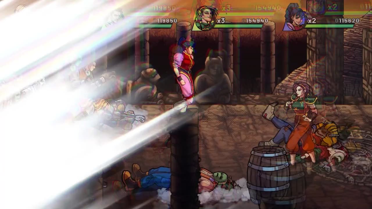 Геймплей построен на классической схеме side-scrolling: вы движетесь слева направо сквозь каждый уровень, уничтожая волны врагов, пока экран не прокрутится дальше. Каждый персонаж располагает обширным арсеналом ударов — комбо, прыжковые атаки, броски и мощные специальные приёмы, которые очищают весь экран от противников, но требуют затрат здоровья. В конце каждого этапа вас встречает боевой босс, требующий победы для продвижения. Местная кооперативная игра для четырёх игроков позволяет играть вместе, с каждым управляя своим персонажем и его уникальным боевым стилем.