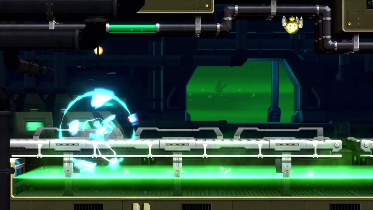 Мега Мен возвращается в новой части серии, сочетая классическую сложную платформенную игру в 2D с визуальным обновлением, в котором рисованные окружения дополнены детализированными 3D-моделями персонажей. Сюжет вращается вокруг боевых столкновений с Роботами-Мастерами: победив каждого, Голубой Боец захватывает его оружие и получает визуальные изменения, отражающие новые способности. Атмосфера сохраняет характерный для серии колоритный и энергичный стиль.