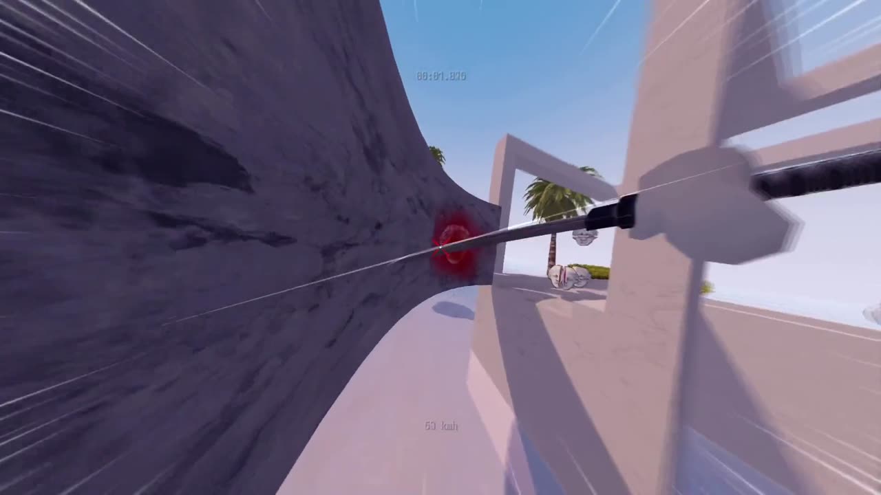 Паркур здесь реализован плавно: ты прыгаешь по стенам, взбираешься вверх, скользишь под препятствиями, используешь прыжковые площадки, цепляешься за троса и применяешь крючок с тросом для навигации по уровням. Боевая система проста, но удовлетворительна — ты просто размахиваешь катаной, разрезая встреченные мясные статуи. Каждый уровень требует от тебя найти оптимальный маршрут и выполнить боевые действия максимально быстро, чтобы занять место в глобальных или дружеских таблицах лидеров, где конкуренция строится на времени прохождения.