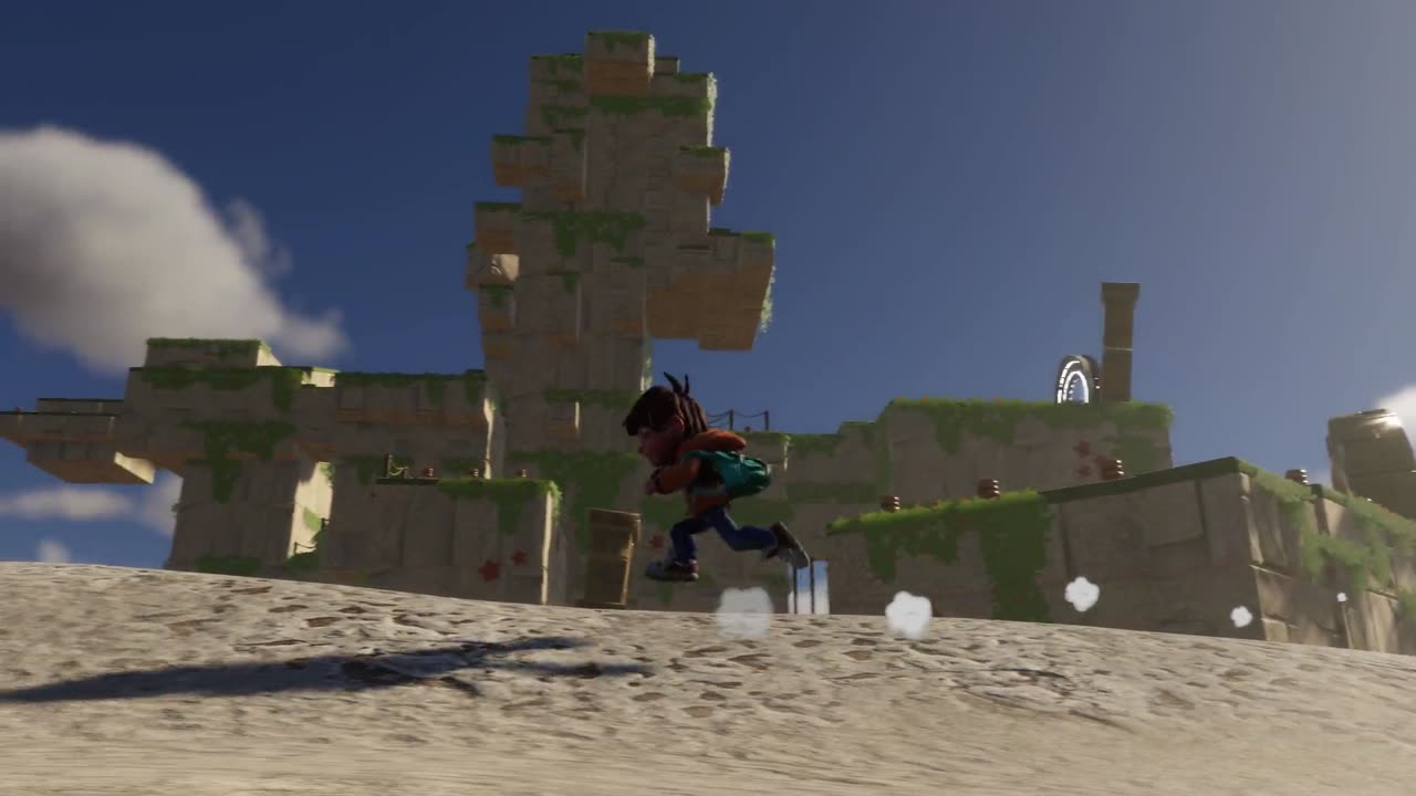 Игрок управляет Элоном, используя комбинации прыжков, вращений и прилипания к стенам, чтобы преодолевать препятствия и добираться до бургеров. Глайдинг без усталости позволяет маневрировать между скалами и руинами, а разнообразие локаций требует адаптации стиля игры — от быстрого бега по платформам до точных позиционирований для сбора предметов. Цикл повторяется: поиск, взаимодействие с объектами, освоение новых навыков для доступа к следующим зонам.