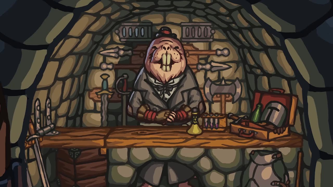 Игровой процесс включает случайно генерируемые уровни и ловушки, которые нужно обнаружить. Каждое сражение требует от вас умения парировать и наносить различные удары: от мощных толчков до точного парирования атак противников. В вашем распоряжении инвентарь для бросания врагов в шипы или пропасти, что добавляет тактику в бою.