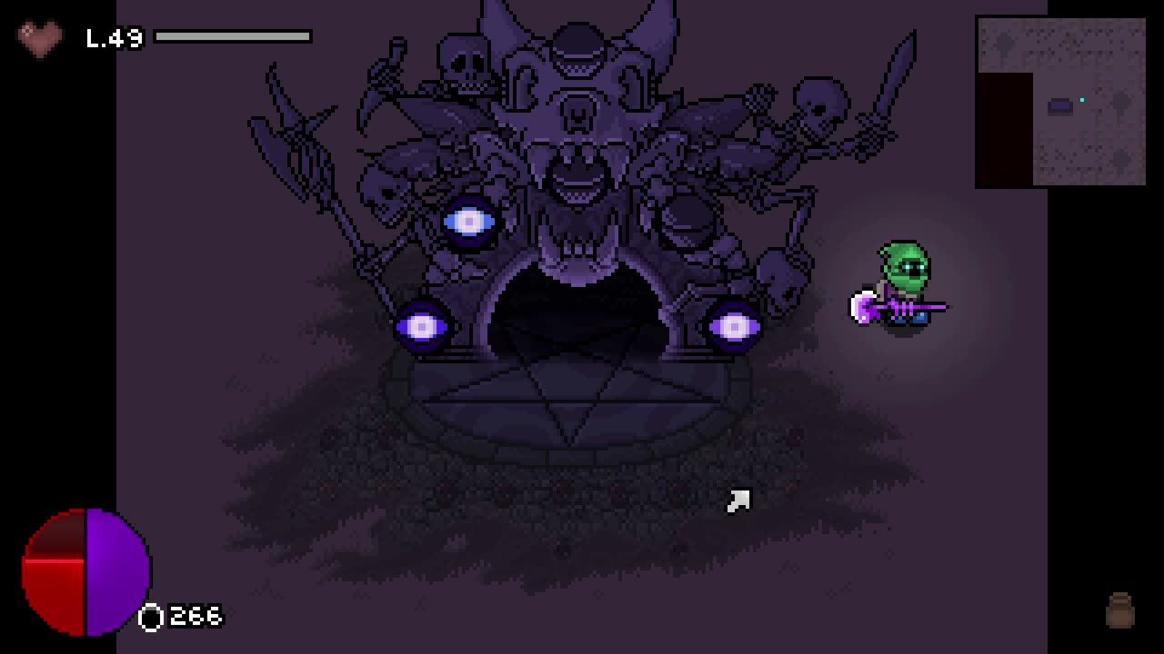 Игровое поле представляет собой огромный открытый мир с случайно расположенным в нём лабиринтом подземелий, что гарантирует уникальную каждую игру. Правила перманентной смерти требуют от вас осторожности: у вас есть только одна «душевная» энергия, и она полностью восстанавливается при успешном прохождении игры.