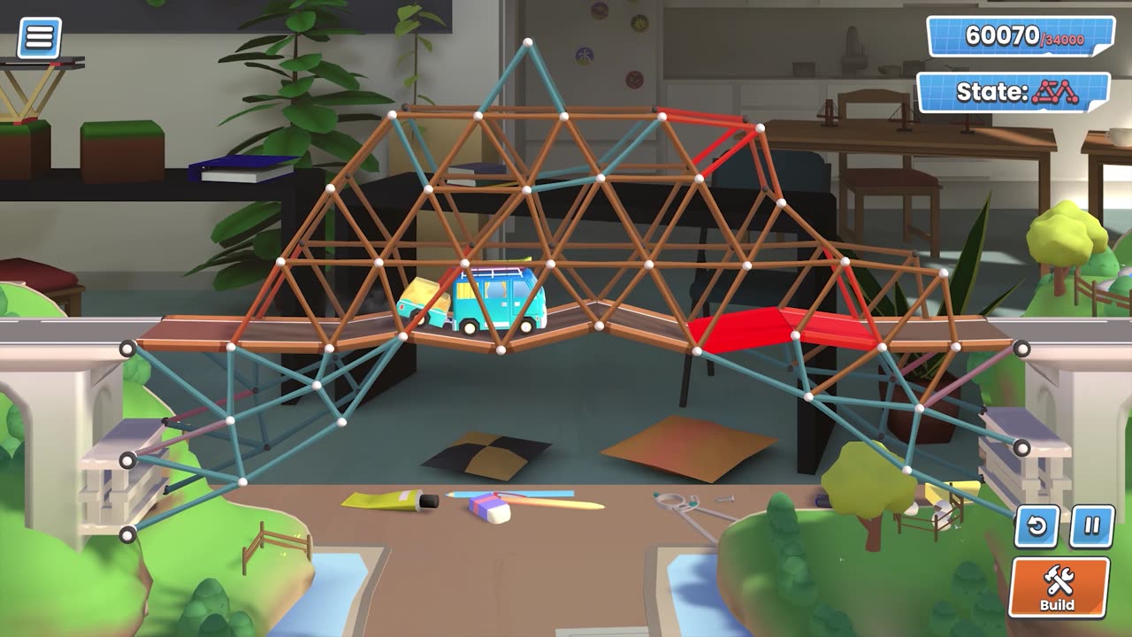 Bridge Constructor Studio предоставляет неограниченные возможности для творчества: вы можете строить мосты любой сложности и формы, от простых конструкций до самых смелых и необычных проектов. Игра предлагает как базовые задания для начинающих, так и более сложные задачи для опытных игроков, где нужно учитывать нагрузку на мост и соблюдать бюджет.