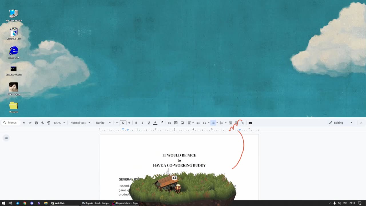 Ropuka's Idle Island — это простая игра-активность для вашего компьютерного рабочего стола, где вы можете разместить лягушку на любом месте экрана и сосредоточиться на работе или отдыхе. Основная механика заключается в том, что Ropuka непрерывно стрижет траву, которая служит валютой для улучшения инструментов, повышения качества травы или её украшения.