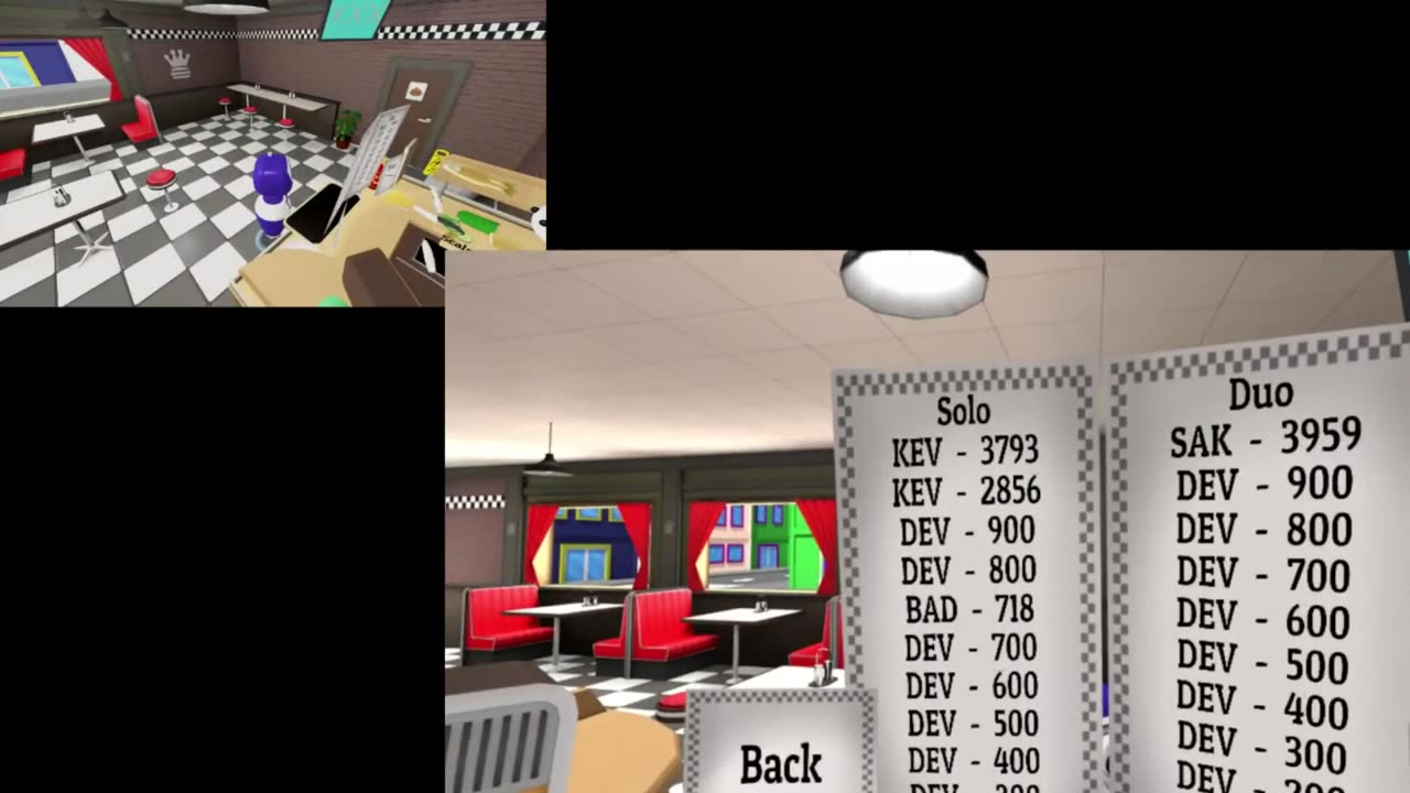 VR The Diner Duo — это местный мультиплеерный VR-игрой для HTC Vive, где игроки вместе управляют рестораном. В игре два управляемых персонажа: шеф-повар и официант.