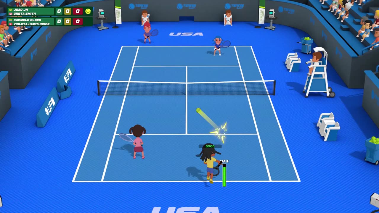 Для любителей веселой атмосферы в игру включены Super Blast режимы с элементами, такими как живая сетка и нестандартные задания на кортах. Это добавит дополнительной захватывающей динамики в мультиплеерных матчах. Super Tennis Blast — идеальный выбор для тех, кто хочет насладиться теннисом с друзьями или соревноваться самому против компьютера. Готовы к игре? Начните свой путь к победе: Game, Set, Match!
