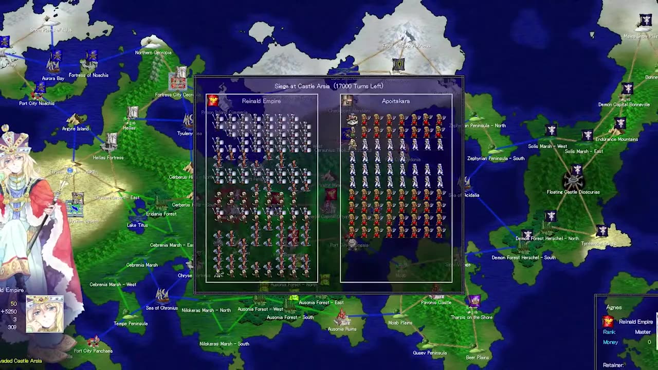 Игрокам доступны более 100 уникальных персонажей-генералов, которые были созданы художником Agahari и снабжены музыкой от Cranky. В английской версии игроки могут выбрать одну из шести фракций для начала игры, в то время как японская версия предлагает полную доступность всех фракций.