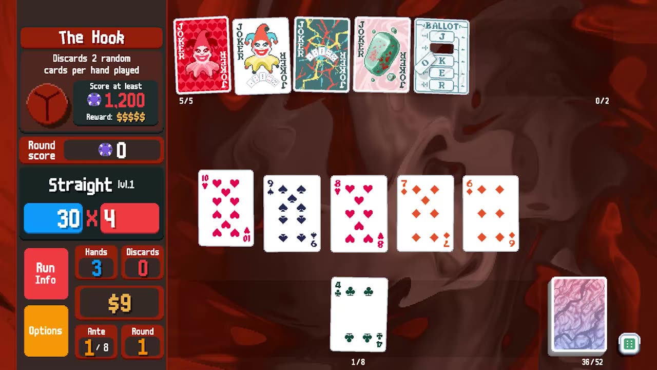 Balatro – это roguelike-покерная карточная игра, которая позволяет игрокам создавать мощные синергии и побеждать в больших матчах. Игроки должны объединять верные покерные руки с уникальными картами Джокера для создания разнообразных комбинаций и стратегий. Цель – заработать достаточно фишек, чтобы победить агрессивную систему слепых ставок, раскрывая при этом бонусные руки и колоды по мере прохождения. Каждый ход может коренным образом изменить сценарий игры благодаря разнообразию доступных инструментов.