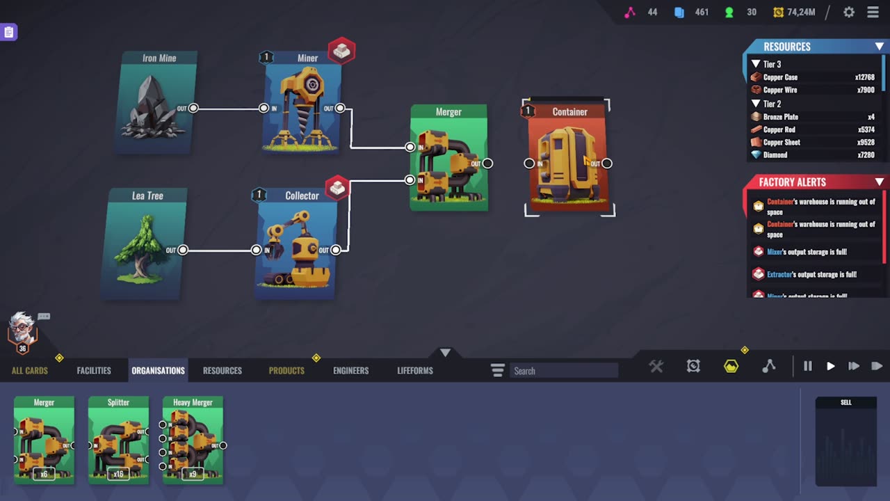 Craft new cards or upgrade existing ones to improve your capabilities. As you progress, unlock more complex cards to scale your factory into a highly advanced industrial hub.