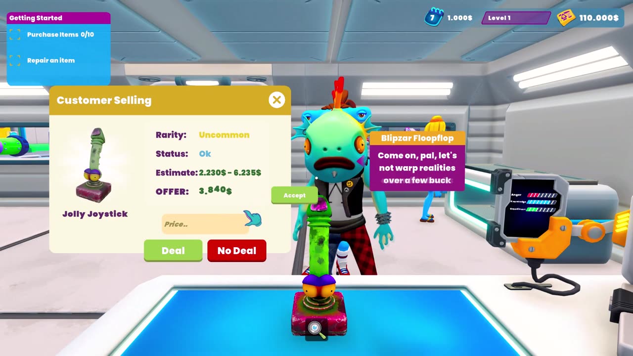 Welcome to Pawn Planet! Your intergalactic pawn shop adventure! Transform a dusty corner of the cosmos into a thriving business where quirky alien artifacts and cosmic bargains abound. Buy, repair, and sell mysterious treasures to become the galaxy’s top entrepreneur. Ready to hustle among the stars?