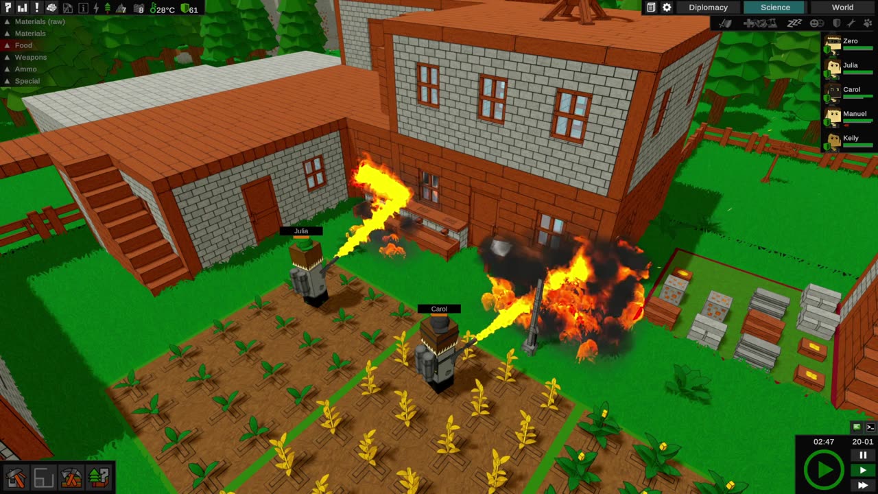 While your colony is frequently visited by wanderers, traders, and other groups, less peaceful individuals may also become aware of your community. Whether it's hostile colonists, dangerous animals, or intelligent insects, you should always have a good defense strategy in place. Nature, of course, provides a number of events that can hasten the death of your colonists.PLAY TOGETHER