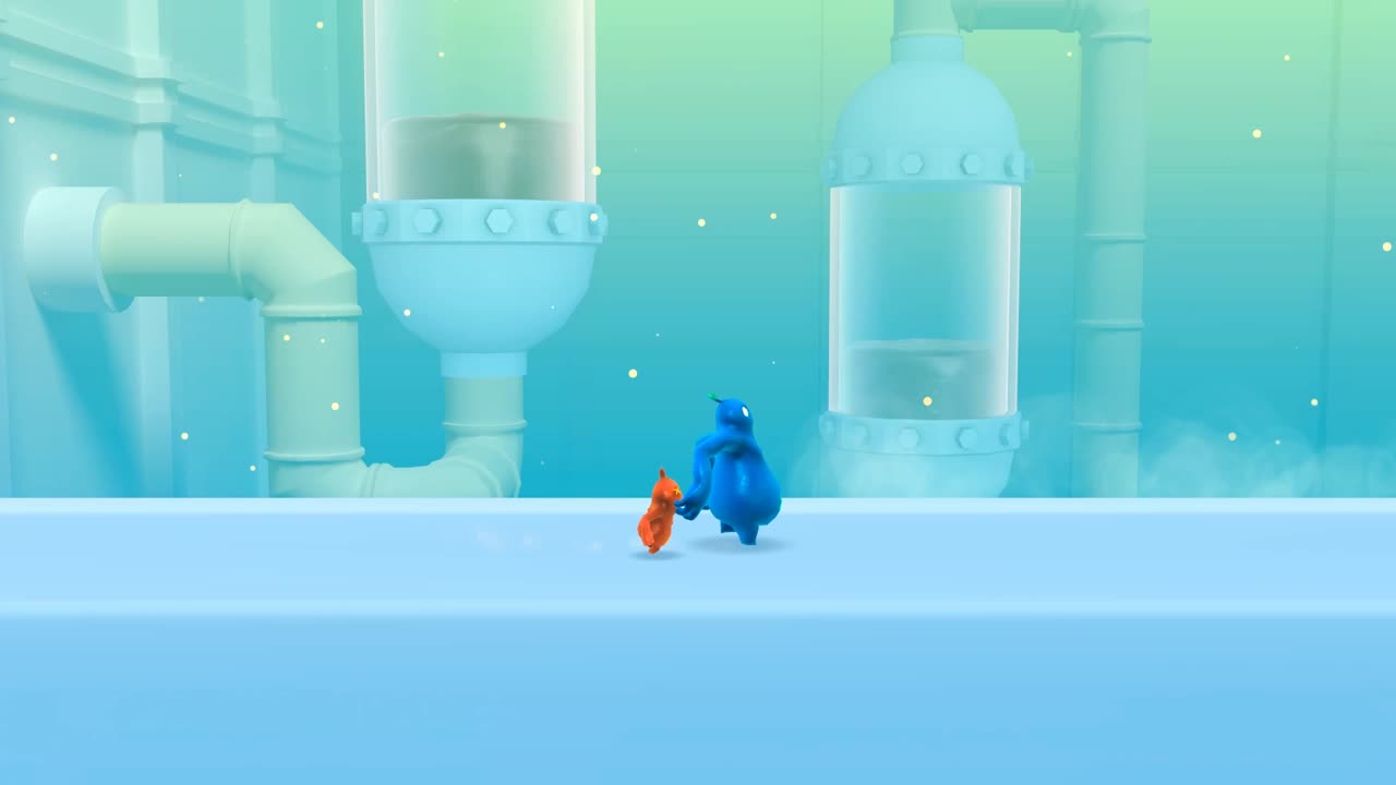 The two jello jelly creatures Bismo and Plom got connected in a tragic yet funny accident and thus can exchange their size and abilities at will. Welcome to the world of Shift Happens - the only game out there which doesn't take a closer look at the body mass index and where players are actually forced to work togehter (and occasionally stab each other in the back).
