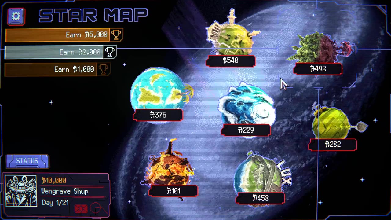 Seven distinct planets to trade procedurally generated alien baby stocks on, each showcasing unique ideas of what it means to be profitable and productive to society.