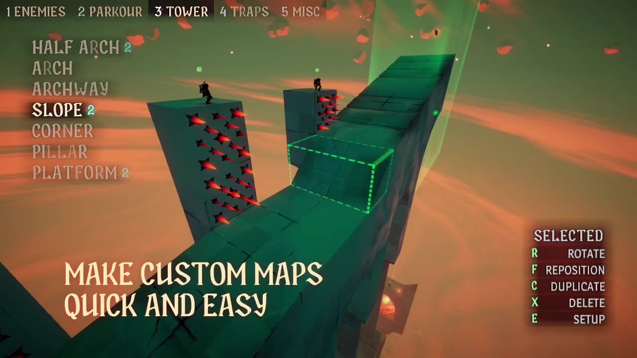 Even with all of your skills, there are still knights out there waiting to take you to the limit. Four main hubs full of highly replayable towers packed with challenging combat scenarios, platforming bits and opportunities for creative environmental kills.