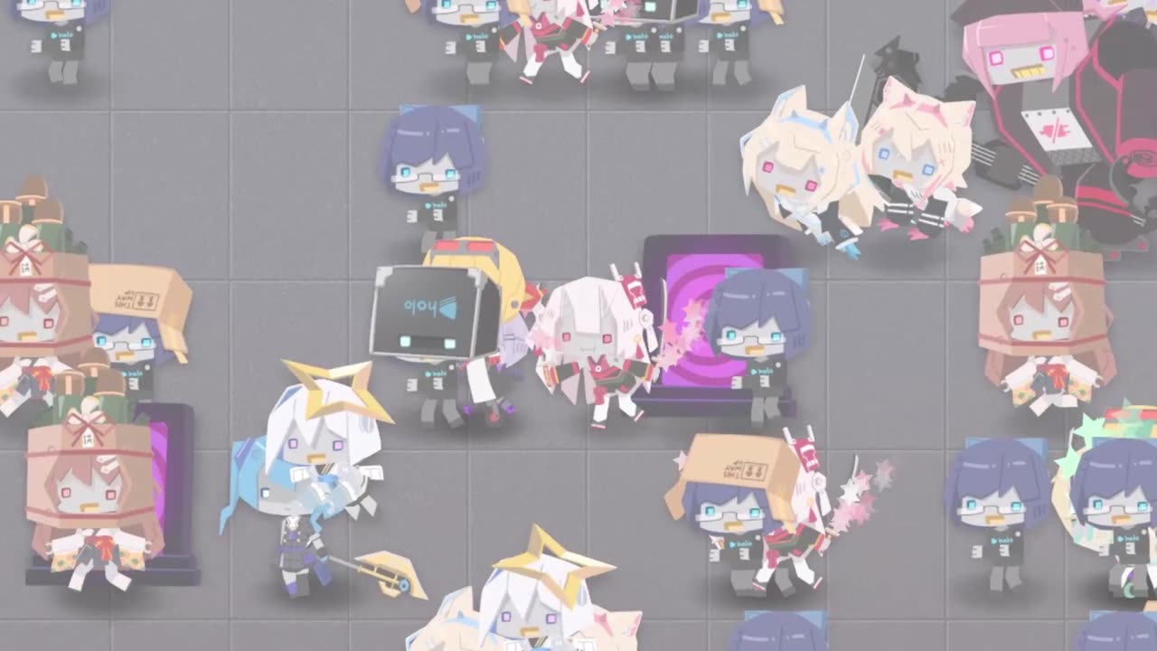 Роботы атакуют hololive, и только энергия поддержки фанатов может их остановить. В этой lane-based tower defense роботы наступают волнами, а вы должны призывать голодолл — ожившие фигурки персонажей hololive — чтобы защитить башни и отразить вторжение. Атмосфера игры держится на контрасте между милым hand-drawn арт-стилем и напряжением боевых действий, что подчёркивается ремиксами на песни hololive в саундтреке.