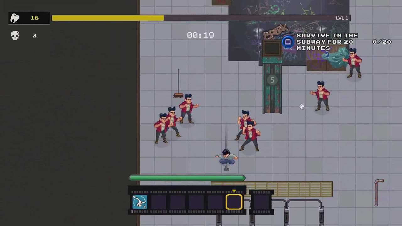Боевой рогелит о мастере боевых искусств, сражающемся с преступниками на улицах города в стиле боевиков 1980-х годов. Выживание зависит не от мощного оружия, а от умения находить импровизированные средства боя — пластиковых фламинго, швабры, детских игрушек — и использовать окружающую среду против врагов. Манипулируйте предметами вокруг вас: сбивайте противников объектами, обрушивайте конструкции, наносите удары микроволновкой. Каждая локация предлагает уникальный арсенал подручных средств, создавая разнообразие в подходах к боевым ситуациям.